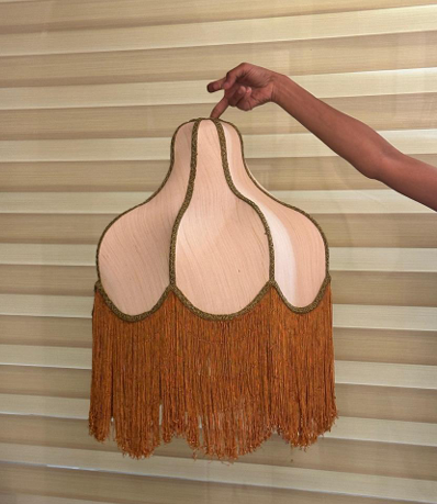 Color: Cream & Green (Green Fringe) Material: Fabric Shade + Fringe + Metal Frame Style: Vintage / Retro / Classic Scallop Design Light Fixture...
