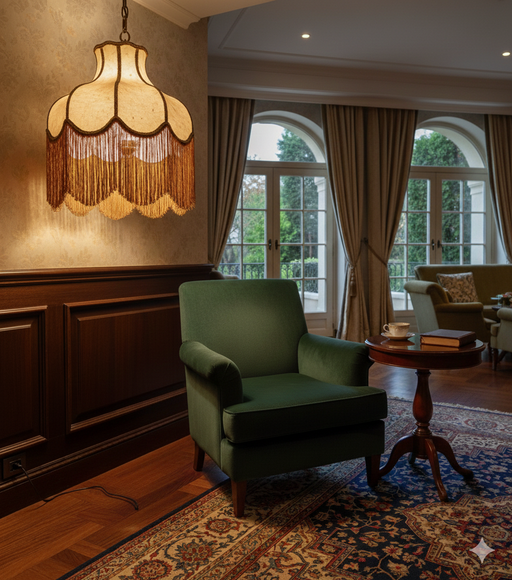 7 star DECOR Vintage Fringe Pendant Light | Classic Fabric Hanging Lamp Shade for Bar, Cafe, Living Room & Home Decor | Retro Scallop Design Ceiling Light (Cream & Green)