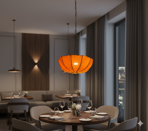 7 Star Decor Orange Lotus Pendant Lamp – Modern Fabric Ceiling Light