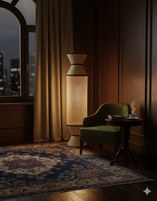 7 Star Decor Tall Rattan Cylinder Floor Lamp – Modern Cane Standing Light