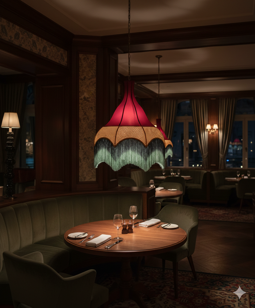 7 star DECOR Luxury Velvet Pendant Lamp Shade | Handcrafted Red Velvet Hanging Light Cover for Living Room, Cafe & Home Decor | Elegant Draped Fabric Ceiling Shade (Deep Red)