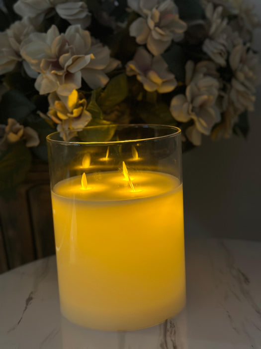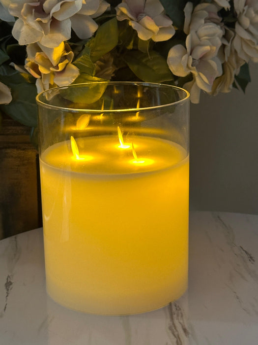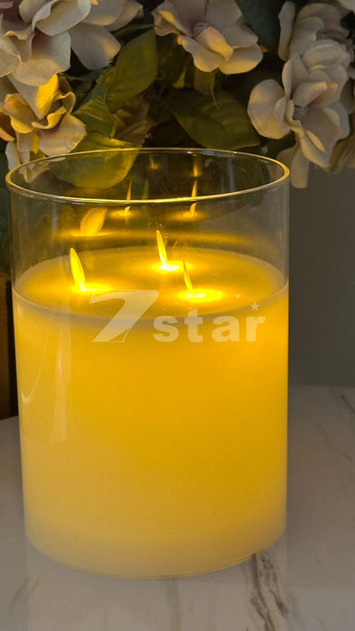 LED Glass Triple Pillar Candle Real Wax For Decor at Living Room, Bedroom and Other Ones
