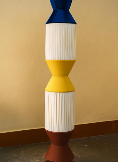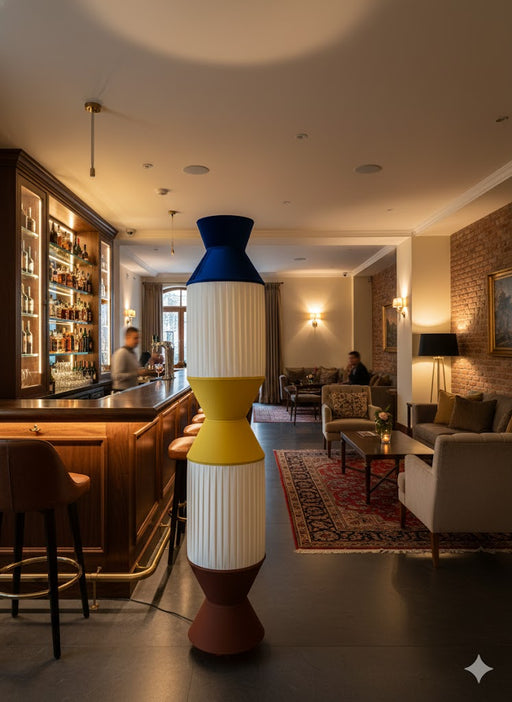 7 star DECOR Modern Designer Floor Lamp | Multicolor Geometric Standing Light for Living Room & Office Decor | Contemporary Pleated Shade Tall Lamp (Blue, Yellow, Brown)
