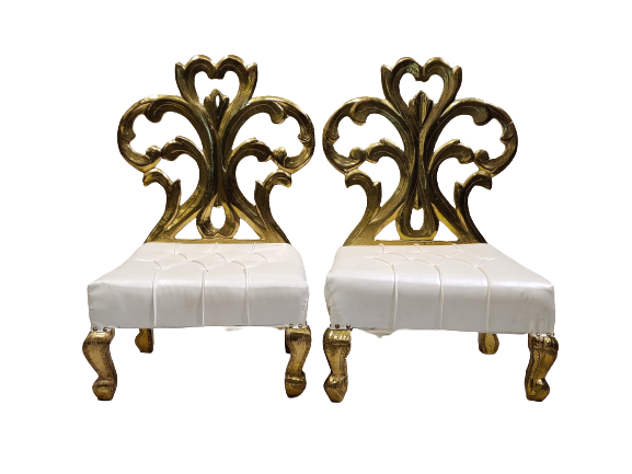 White With Gold Vedi Chairs | Appropriate For Wedding, Party, Ceremony and Banquet Decor