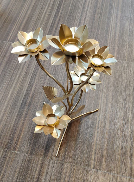 Gold Metal Lotus Candle Stand For Decor