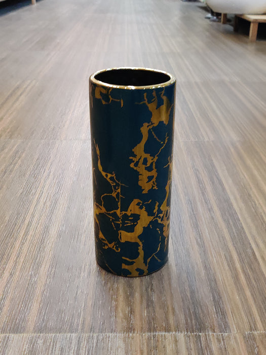 Green With Gold Metal Flower Vase For Decor
