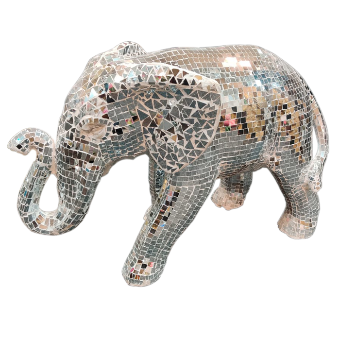 Handmade Fiberglass Mirror Mosaic Elephant Sculptures