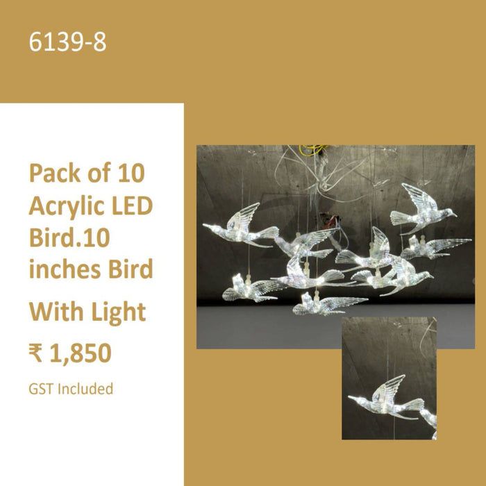 Pack Of 10 Acrylic LED Birds For All Kinds Of Indoor and Outdoor Decor | 10 Inches Bird With Light, 8 Ft Wire Length