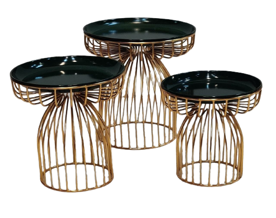 Green With Gold Plate Props For Decor | Set Of 3 Pcs