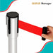 7 star DECOR Silver Stainless Steel SS Queue Manager with Retractable Belt for Banks | Hotel | Reception and other commercial purpose (Set of 2 Poles) (RED BELT)